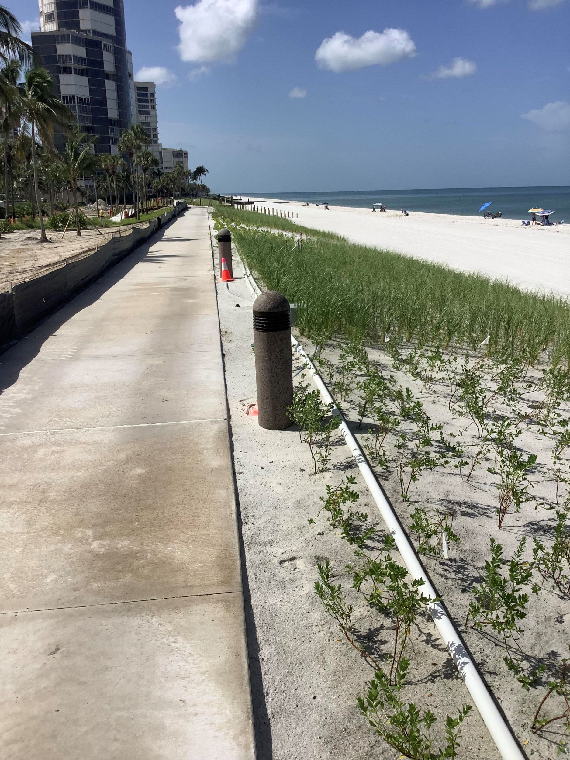 Permit applications and plans have been filed with the City of Naples and Florida DEP. In addition to the concrete work the plans include new turtle friendly lighting bollards, a palate of plants that will be installed to protect the new dune from erosion, and new dune overpasses to replace those that were destroyed by Ian.