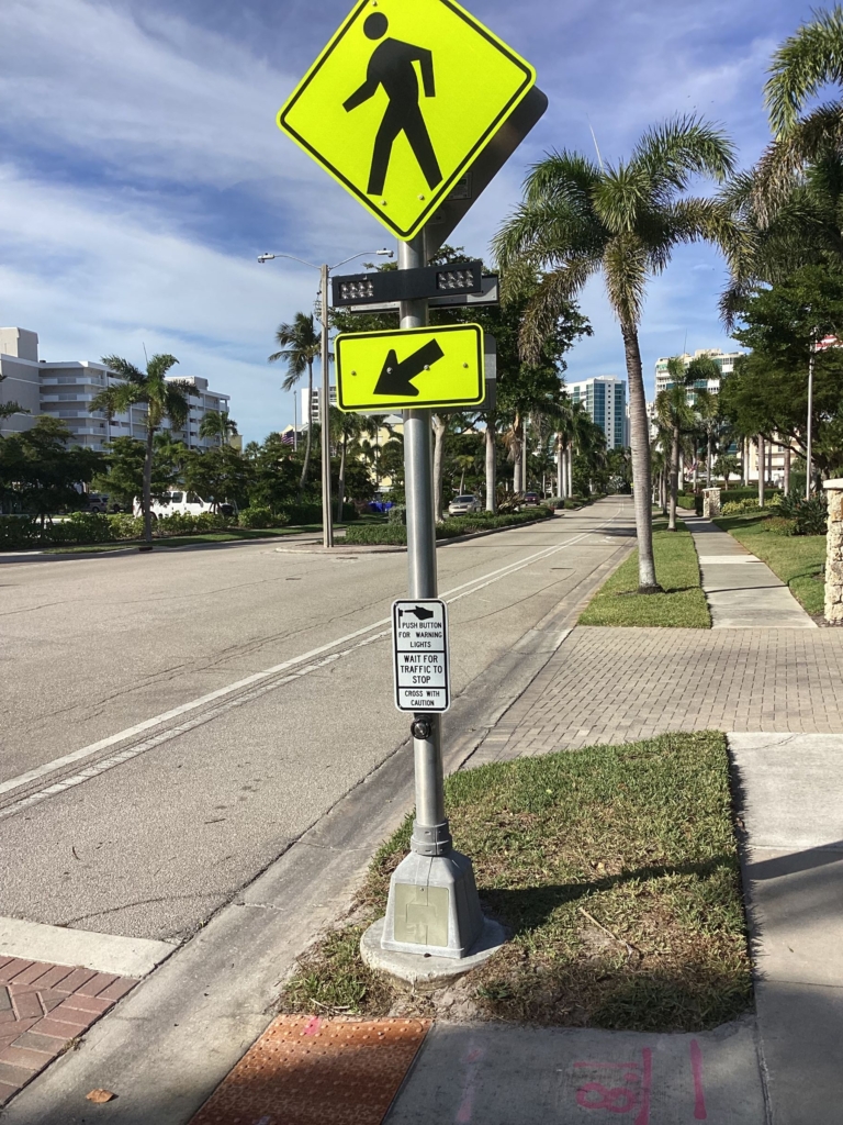 A few years ago, at the request of your GSAC Board of Directors, the City installed signage and flashing lights on Gulf Shore Blvd at the Horizon Way and Vedado Way crosswalks. GSAC raised concerns about pedestrian safety. These lights were added to help make crossing the street safe for everyone.