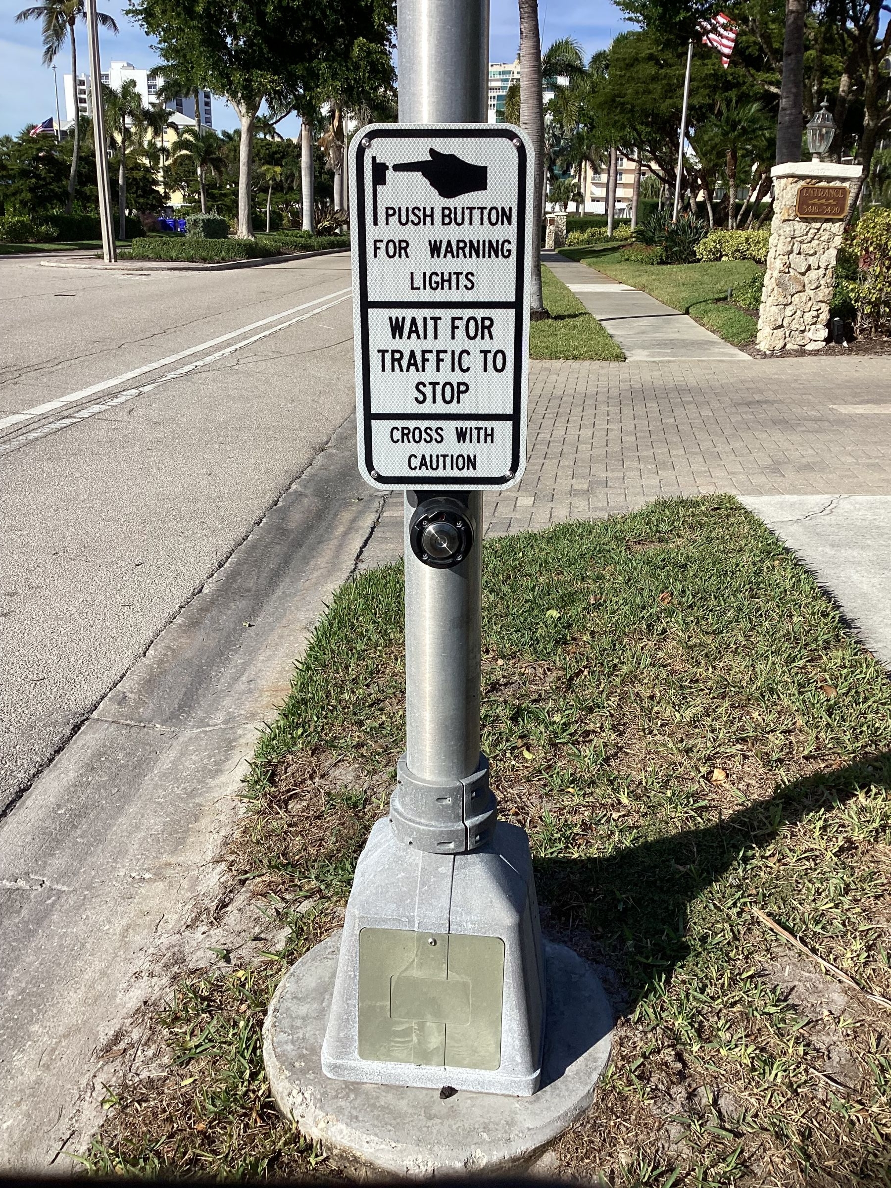 - Use the button to activate the pedestrian flashing sign.