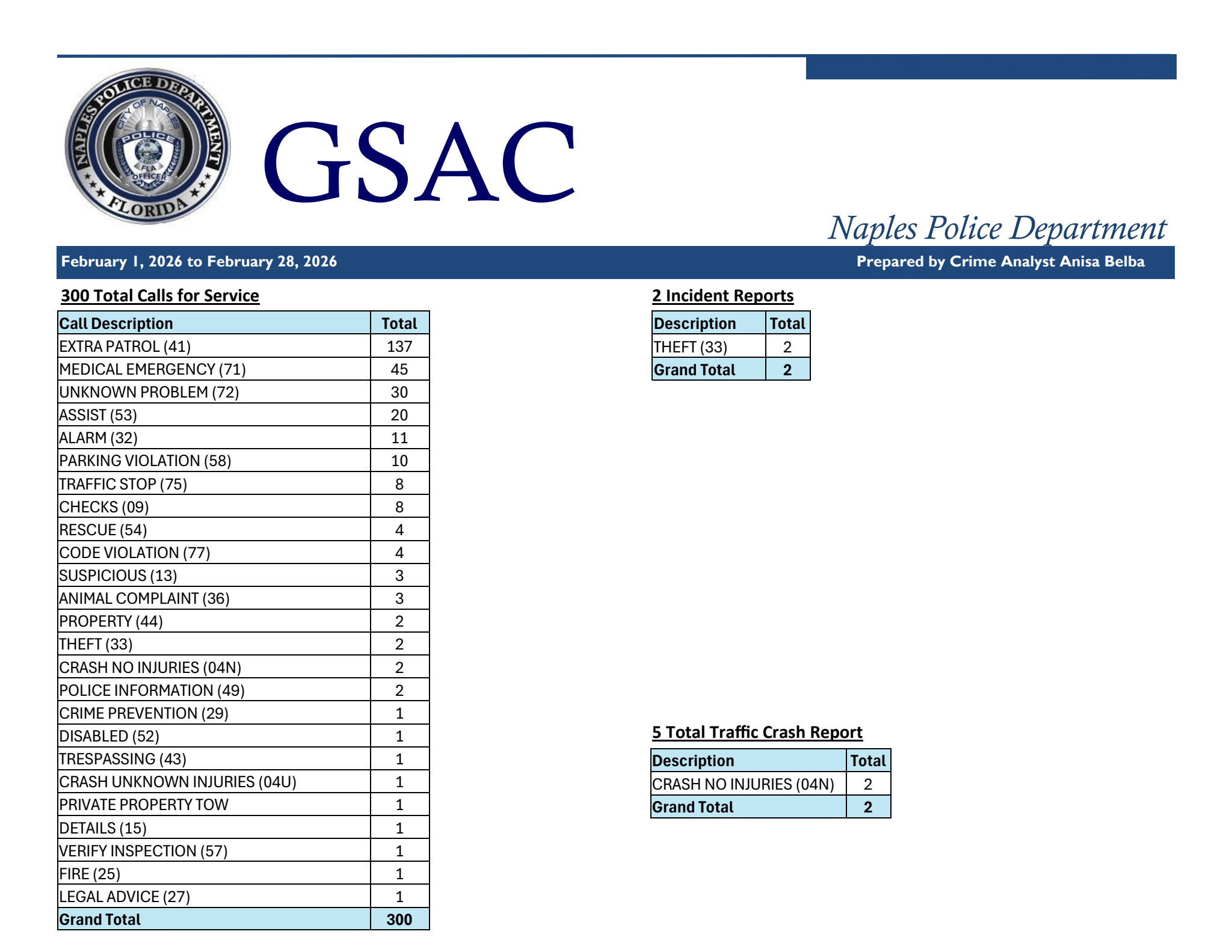 Prepared by Crime Analyst Anisa Belba Naples Police Department reports [...]