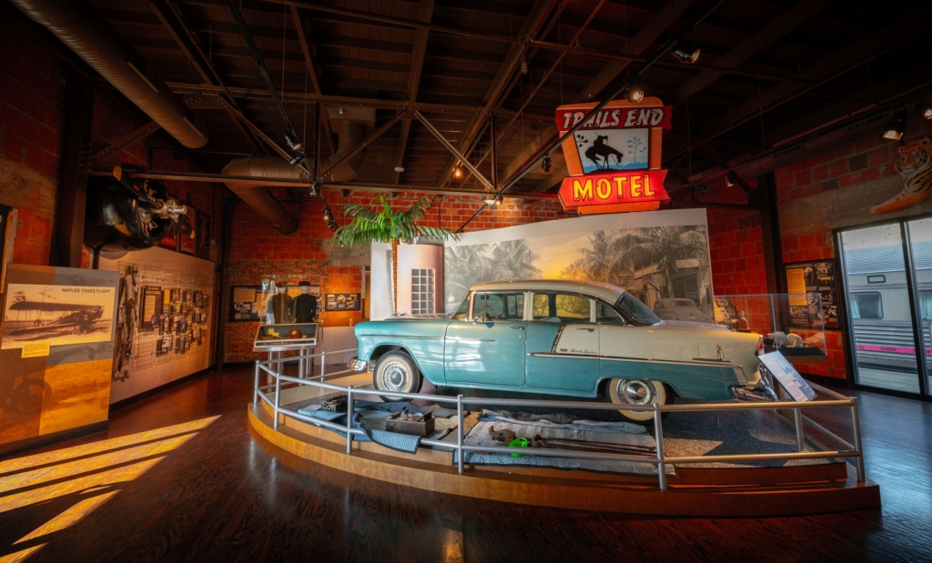 The Depot, built in 1927 as the passenger terminal, along with the Seaboard Budd Observation Tavern Car (1947), Baggage Car (1920) and Caboose (1909) are stewarded by Southwest Heritage Inc and became part of Collier County Museums in 2005. Exhibits celebrate the railroading boom days of the 1920s, a period when trade and travel transformed Naples from frontier village to glamorous Gulf coast resort.