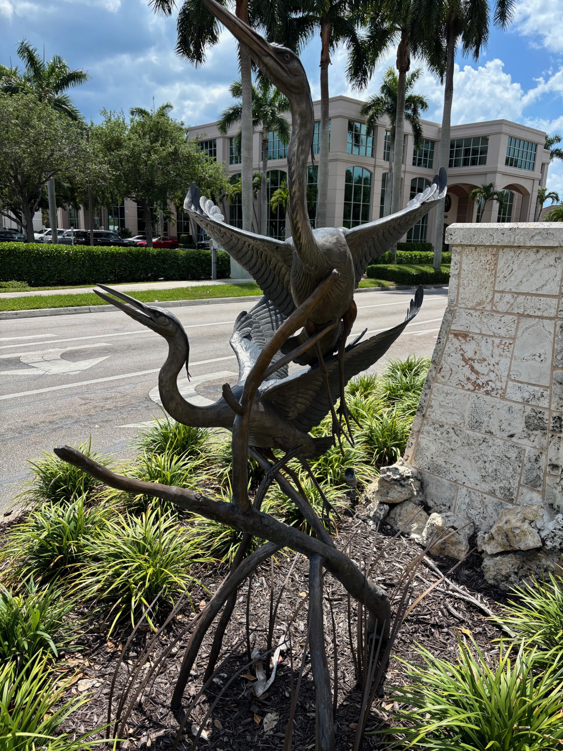 In addition to landscaping enhancements, “Taking Flight” a Great Blue Herons sculpture by David Turner was installed in 2024 at the corner of Park Shore Drive and US41.